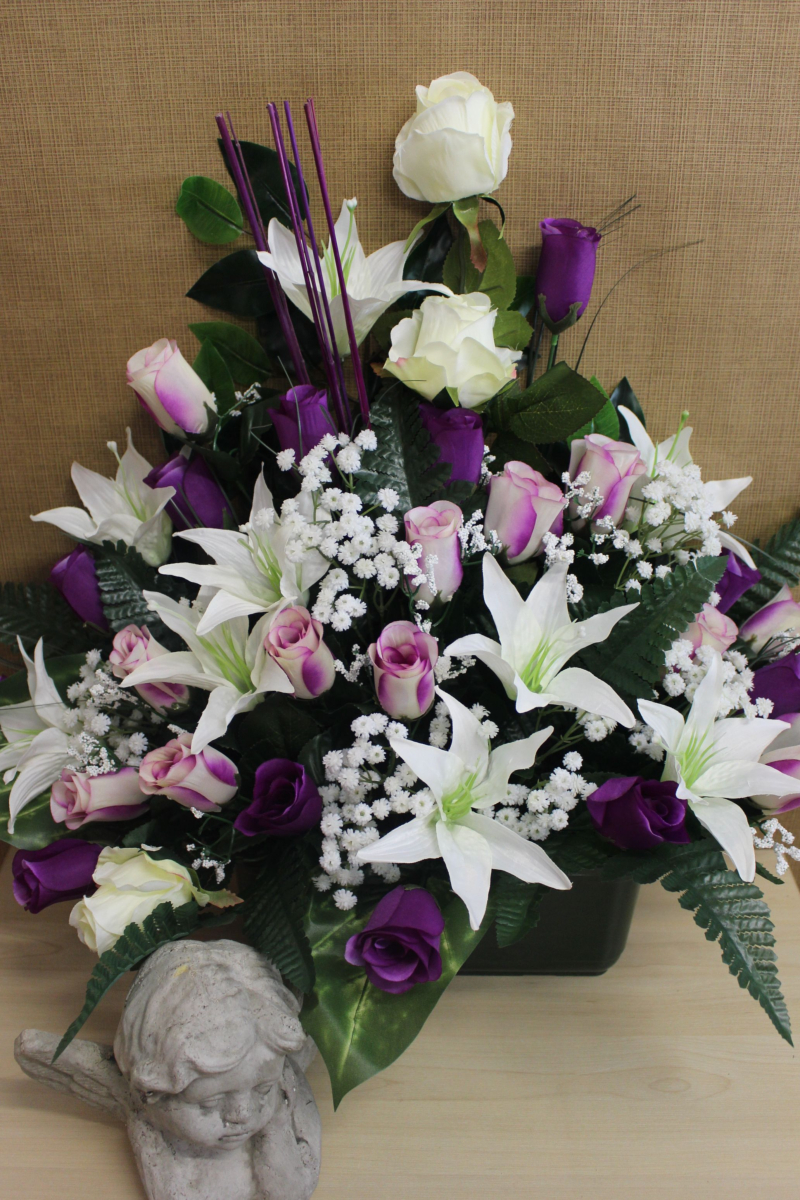 Honorez durablement votre proche avec ce carré en fleurs artificielles conçu spécialement pour le cimetière.
