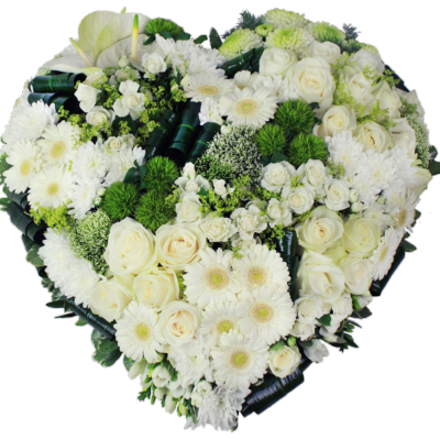 Ce cœur de fleurs pour cérémonie d’enterrement est composé de fleurs mélangées blanches.