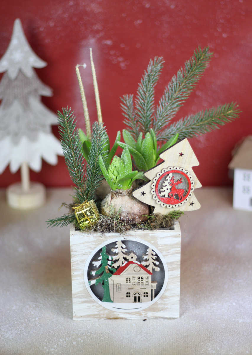 Cette composition festive est parfaite pour votre décoration des fêtes de fin d'année.